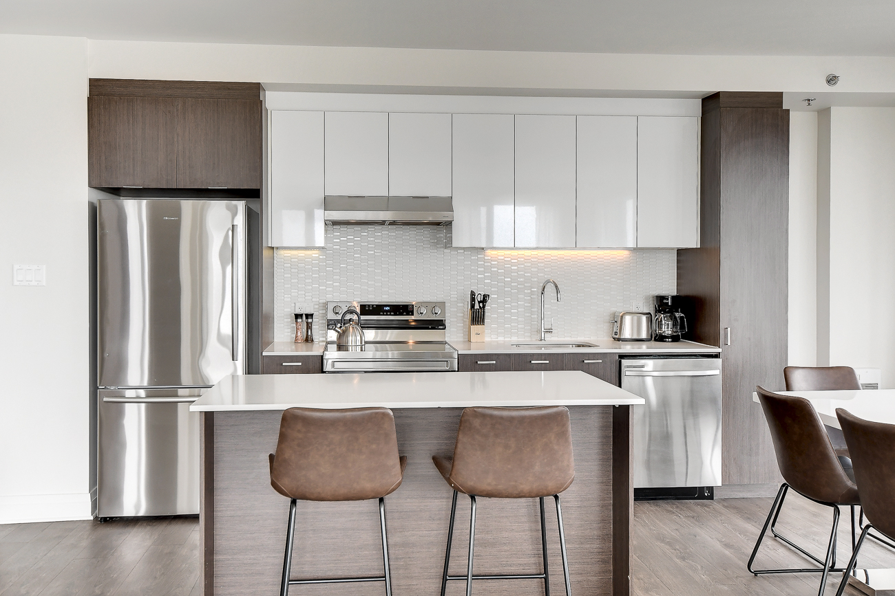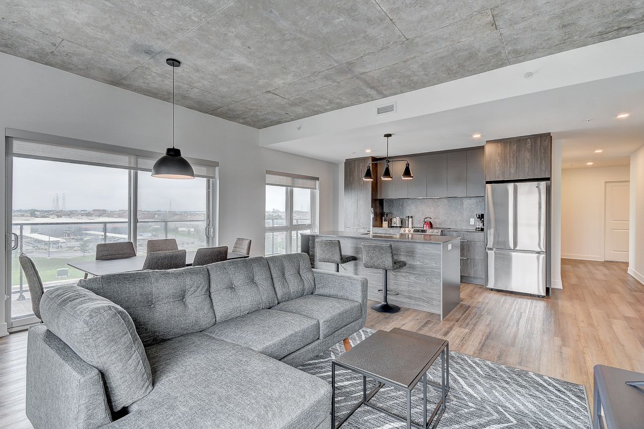 Dès votre arrivée au Saint-Elzéar, vous sentirez que vous êtes dans votre chez-vous. Vous y serez confortable et vous serez ébloui par la qualité de l’ameublement et des équipements. Les grands espaces de vie sont mis en valeur par les plafonds d’une hauteur de 9 pieds et les pièces à aires ouvertes. La généreuse fenestration fournit beaucoup de lumière naturelle et vous profiterez d’une superbe vue sur la ville. La cuisine spacieuse est pourvue d’un îlot central. Le balcon privé procure un espace de vie extérieur considérable. Vous apprécierez les nombreux services offerts par le quartier Centropolis.
