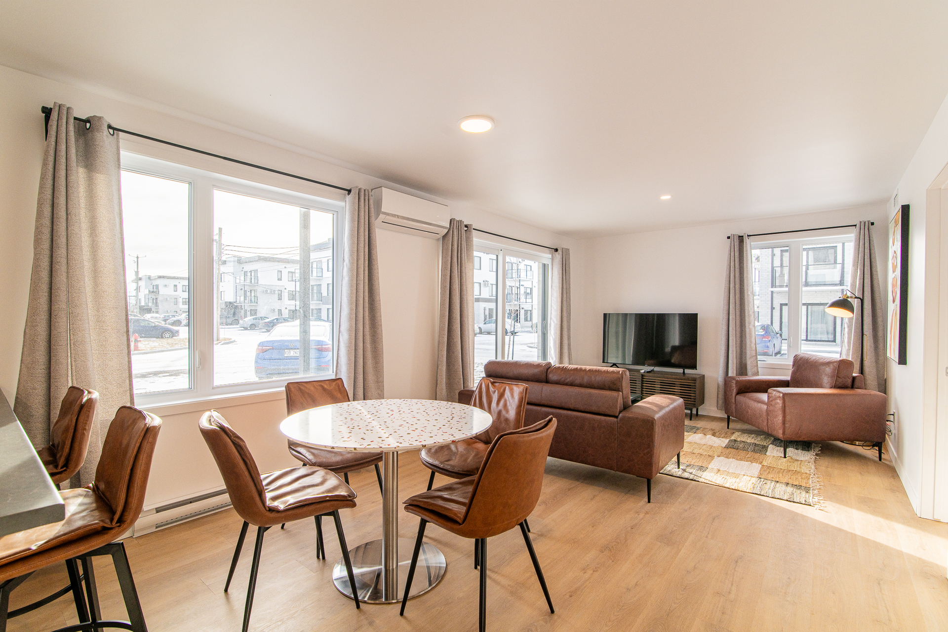 Laissez la lumière naturelle inonder votre espace de vie grâce à une fenestration abondante. Profitez de vues panoramiques sur le paysage environnant, créant ainsi une ambiance chaleureuse et lumineuse à chaque coin des unités.